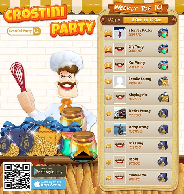 Crostini Party每星期首10名得獎者都會贏得Crostini既豐富禮品!