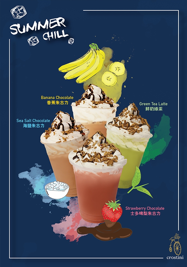 剛登場的士多啤梨朱古力飲品能否迎合你的口味?我們為你準備了更多夏日飲品!今次包括有海鹽朱古力、香蕉朱古力和鮮奶綠茶。每款口味加上濃郁的朱古力醬、幼滑的忌廉、以及朱古力碎片,這四款多重口感的夏日飲品絕對能帶給你驚喜!