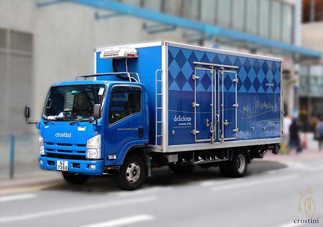 Crostini的食品每日新鮮製造,並由專車送到各間分店。車上設有保溫系統,保證能於炎炎夏日把最好品質的蛋糕送到店內給客人享用!
