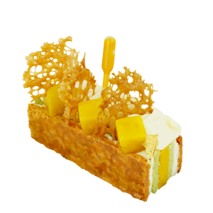 一層疊一層的酥皮香脆中滲出輕輕的牛油香味,再配上新鮮芒果及開心果蛋糕,口感十分豐富!