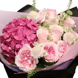 主花:肯亞粉紅田園玫瑰,粉紅繍球花