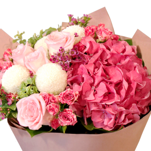 主花:肯亞粉紅玫瑰,荷蘭深粉紅繡球花