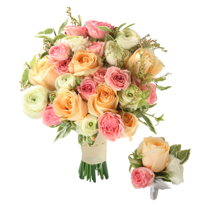 主花:香檳玫瑰、粉紅小玫瑰、小牡丹