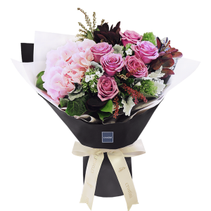 花:粉紅繡球花,紫玫瑰及其他襯花