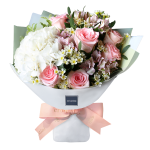 花:荷蘭白色銹球 ,肯亞粉紅玫瑰及其他襯花